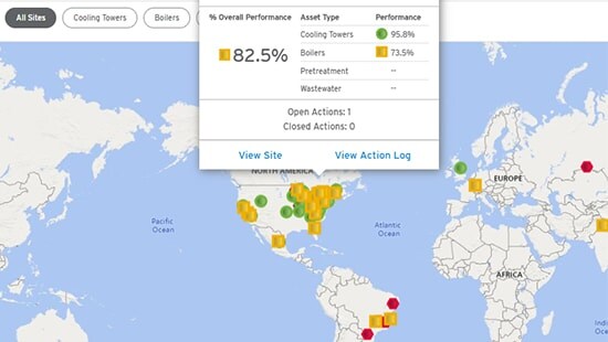 Ecolab’s Water Quality powered by ECOLAB3D provides real-time visibility into your water treatment programme, giving you the insights you need at a glance. Water Quality provides a comprehensive view at the enterprise, site and asset levels, so you can identify underperforming assets quickly and take proactive actions to conserve water, save energy and reduce costs.